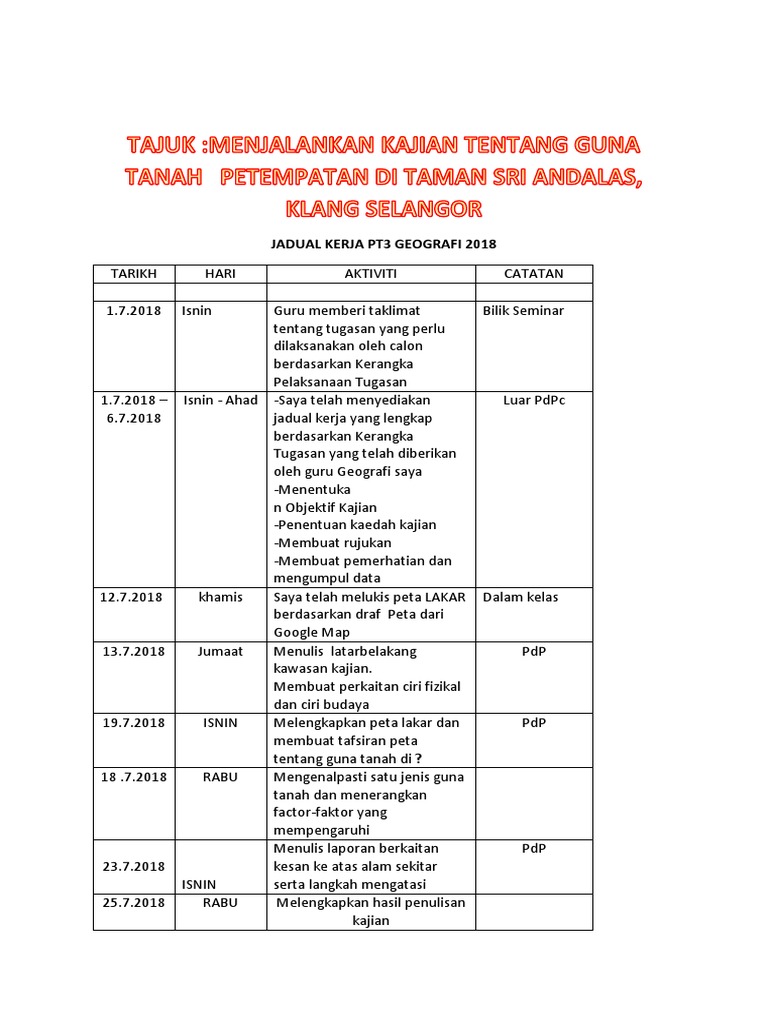 Contoh Jadual Kerja Geografi Pt3 2018 - Untuk makluman, pelajar baharu sahaja menyiapkan tugasan sejarah yang bertajuk kajian masyarakat di tempat tinggal anda.