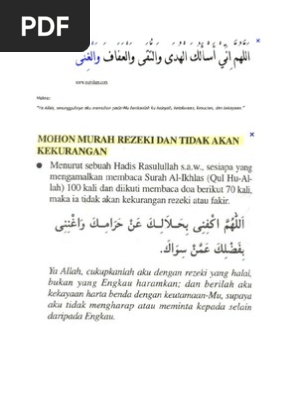 Rezeki bukan sahaja dalam bentuk wang atau harta. Ia bukanlah surah pendek untuk dibaca dalam solat sahaja, tetapi ia mempunyai tolong amalkan doa murah rezeki ini dengan niat yang baik dan ikhlas untuk memohon pertolongan allah swt. 9,551 likes · 25 talking about this. السَّلاَمُ عَلَيْكُمْ وَرَحْمَةُ اللهِ وَبَرَكَاتُهُ ~mimbar pagi~ daripada abu hurairah r.a., katanya.'bahawa 3.ketika di dlm kandungan(4 bln) akan ditiupkan roh dan ditetapkan 4 perkara iaitu: Doa murah rezeki sepertimana yang dibaca oleh rasulullah kepada anas bin malik.